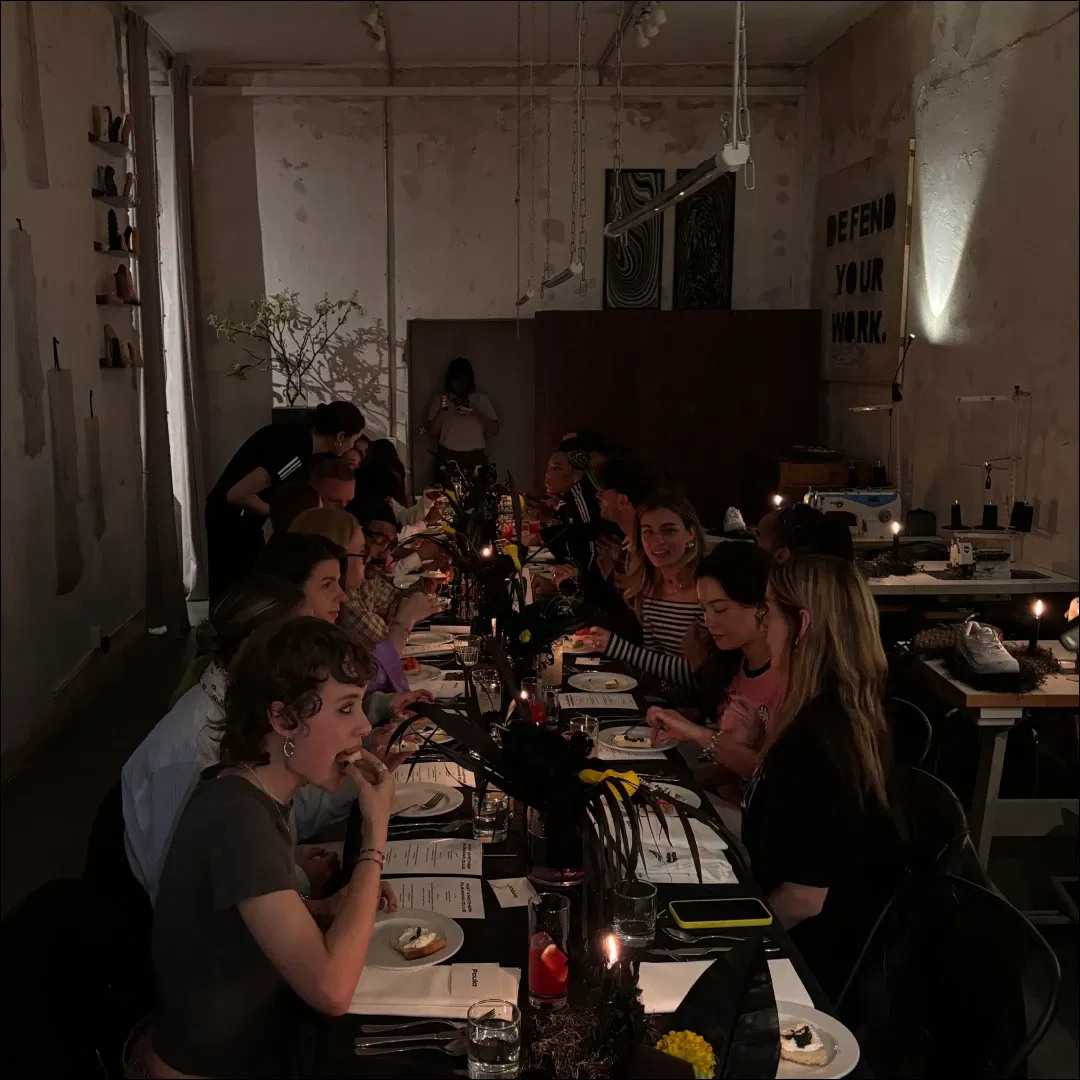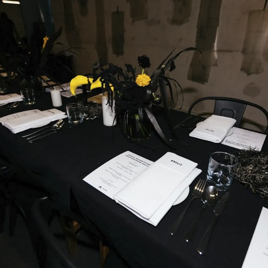 For a running club by Adidas, we realized a dinner on the eve of the Berlin Marathon. An Italian-inspired menu focused on carb loading while maintaining a high standard of cuisine. Selected running shoes were integrated into the setting and staged alongside craft elements such as sewing machines. Floral arrangements completed the setup, connecting performance, product, and dining into a calm, cohesive brand moment ahead of the race.