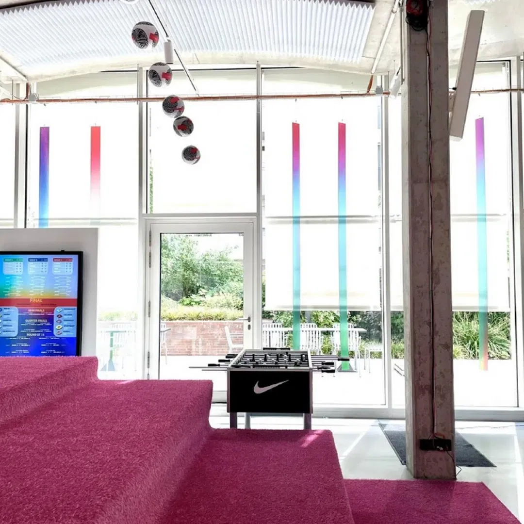 For Nike’s Berlin headquarters, we transformed the entire office space into an immersive brand environment during UEFA EURO 2024. A summer party served as the central event, around which we developed a comprehensive set design that shaped everyday work across the office for two weeks.