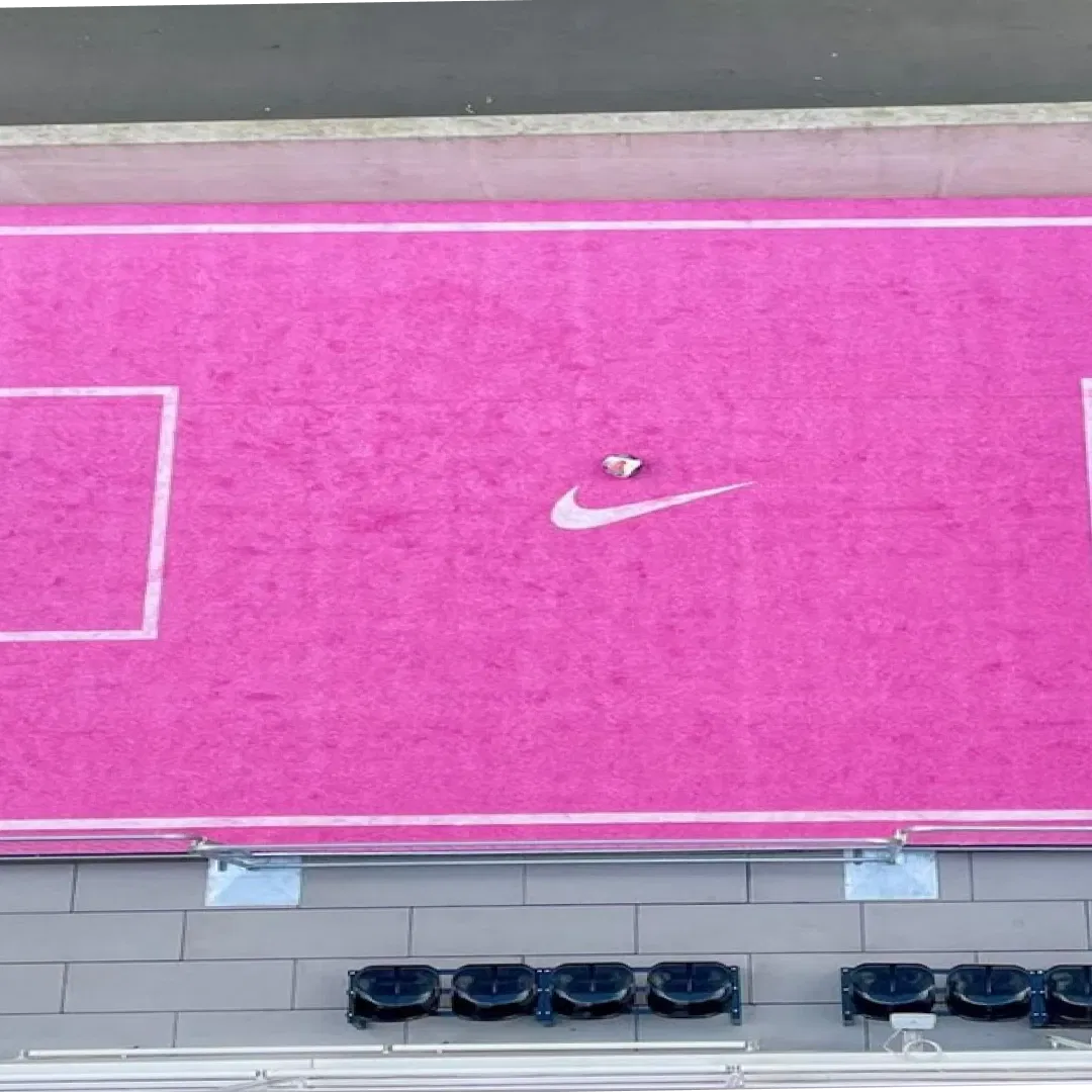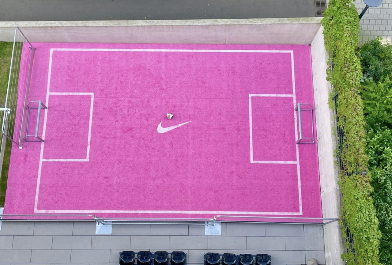 A pink artificial turf ran through the entire space as a guiding visual element, connecting the different areas. Based on the EURO 2024 CI, we worked with gradients, materials, and curated product displays. The office was temporarily reimagined as a workspace, event location, and brand installation at the same time.