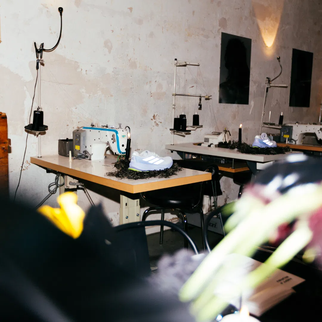 For a running club by Adidas, we realized a dinner on the eve of the Berlin Marathon. An Italian-inspired menu focused on carb loading while maintaining a high standard of cuisine. Selected running shoes were integrated into the setting and staged alongside craft elements such as sewing machines. Floral arrangements completed the setup, connecting performance, product, and dining into a calm, cohesive brand moment ahead of the race.